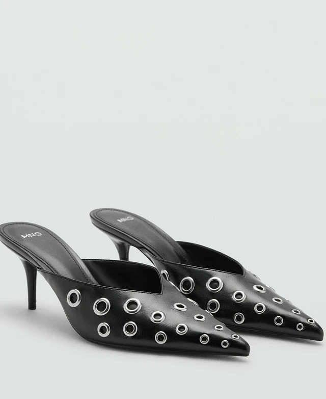 Mango Women's Metallic Detail Kitten Heel Sandals