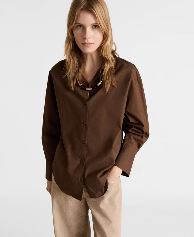 Mango Women's Regular Cotton Lyocell Blend Shirt