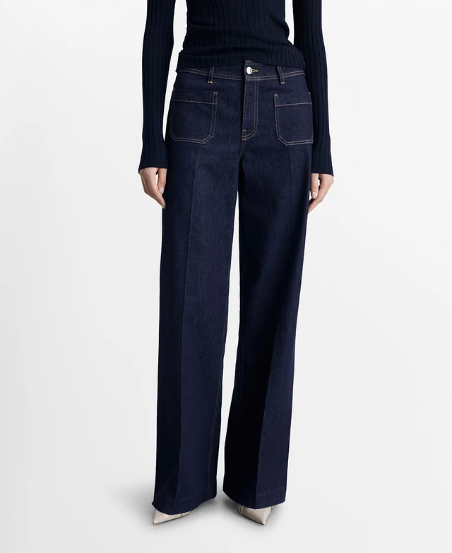 Mango Women's Rinse Wash Pockets Wide Leg Jeans