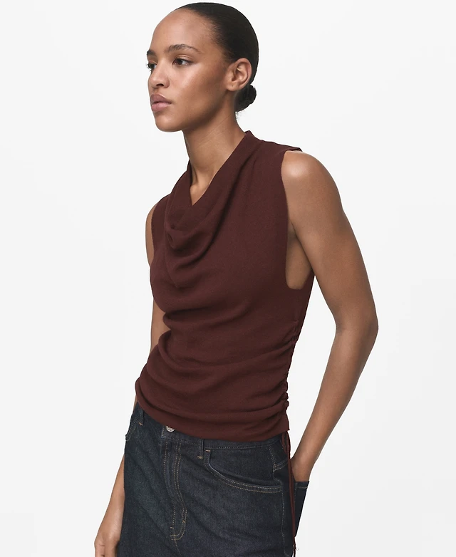 Mango Women's Ruched Knitted Top