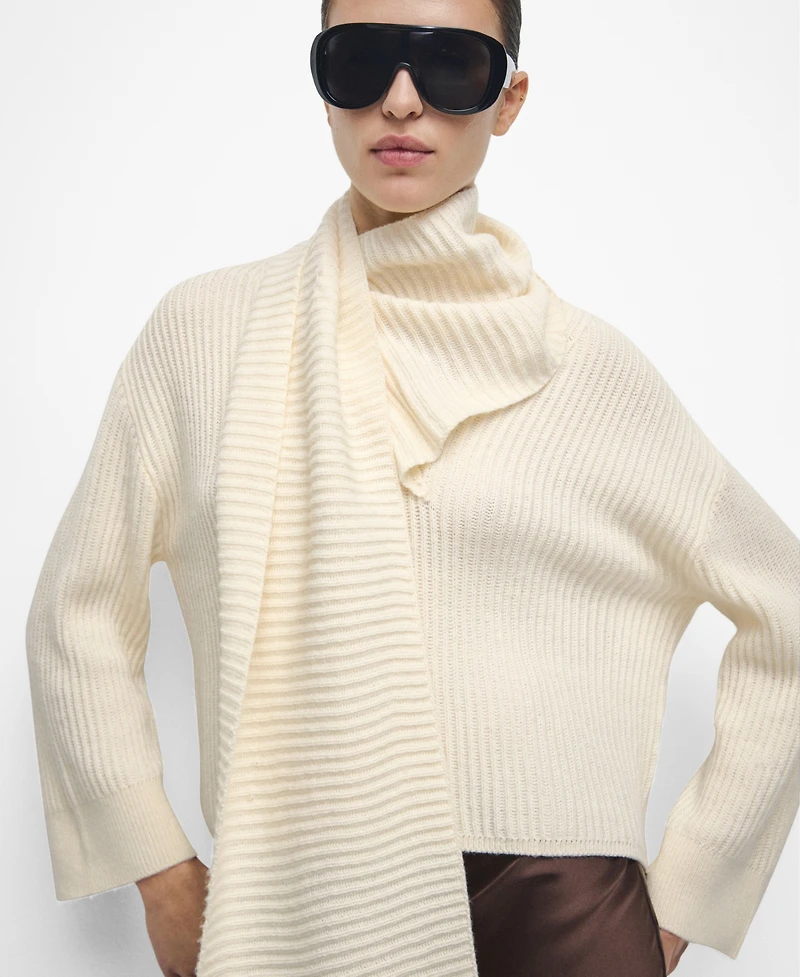 Mango Women's Scarf Detail Ribbed Sweater