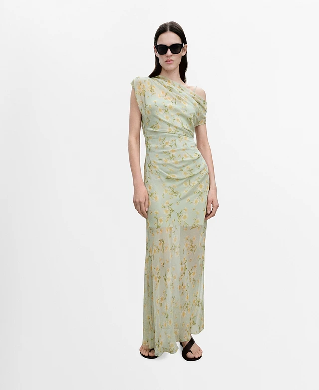 Mango Women's Semi-Transparent Draped Floral Dress