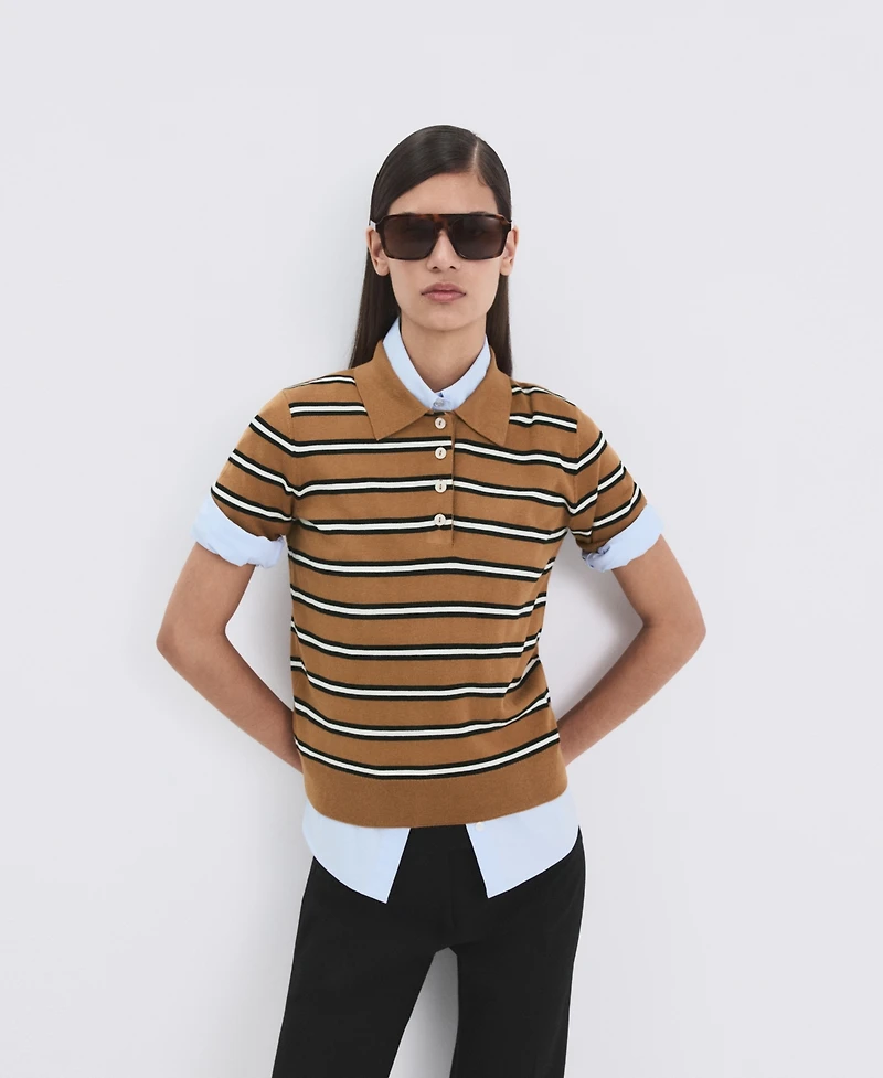 Mango Women's Striped Polo-Neck Sweater