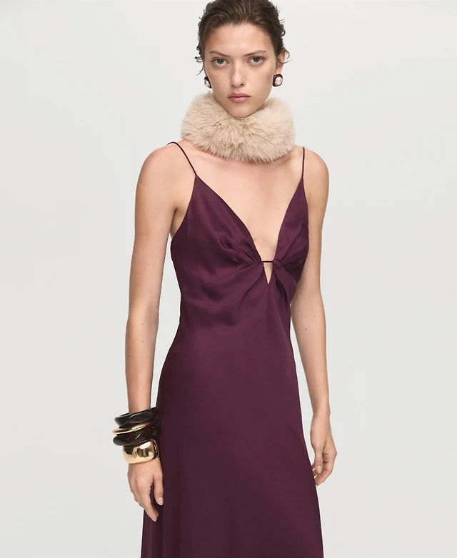 Crystal Doll Women's Printed V-Neck Satin Midi Dress