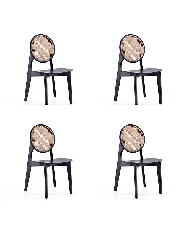 Manhattan Comfort Versailles 4-Piece Round Ash Wood and Natural Cane Dining Chair