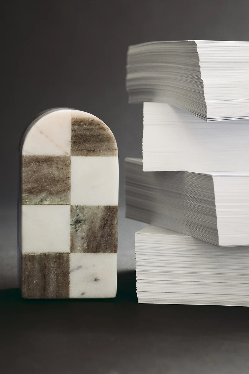 Heavy bookend in marble with a checkerboard pattern. Marble is a natural material, meaning color of each product may vary.