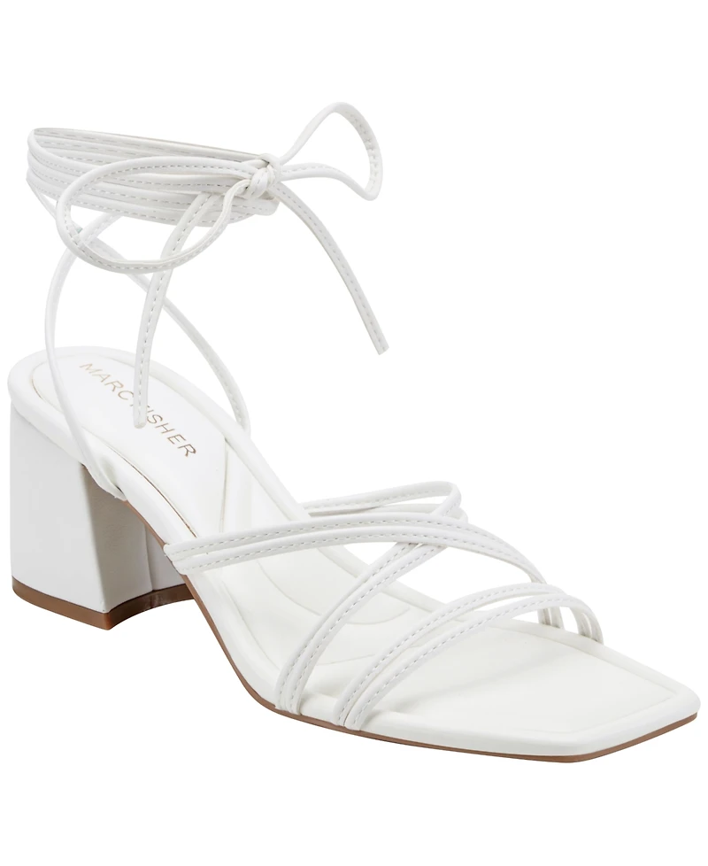 Complete your look in the Marc Fisher Gelardi dress sandals. Featuring a mid block heel, asymmetrical tie-up straps and a sleek design. These sandals are sure to impress. Designed for the modern woman, Marc Fisher Footwear provides statement shoes for every occasion.