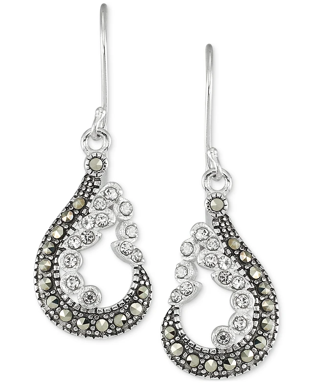 Marcasite & Crystal Pear-Shape Drop Earrings in Sterling Silver
