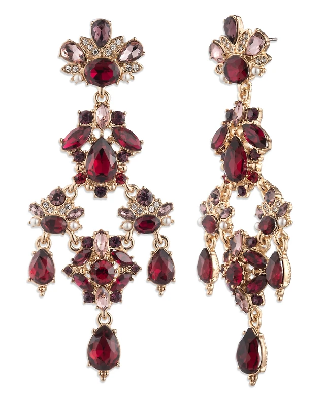 Marchesa Imitation Pearl Multi Stone Gold-Tone Red Drama Chandelier Earrings