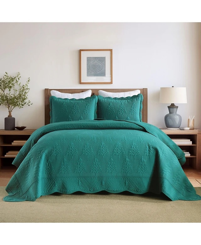 Marcielo 3 Piece 100% Cotton Christmas Tree Bedspread Set Coverlet Lightweight Quilt Queen