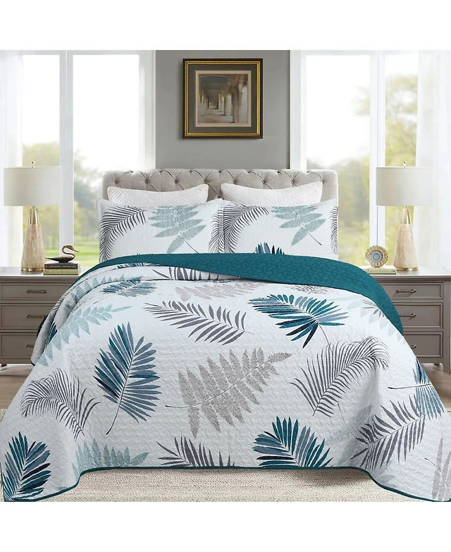 MarCielo 3 Piece Printed Leaf Quilt Set Lightweight Bedspread Set Queen