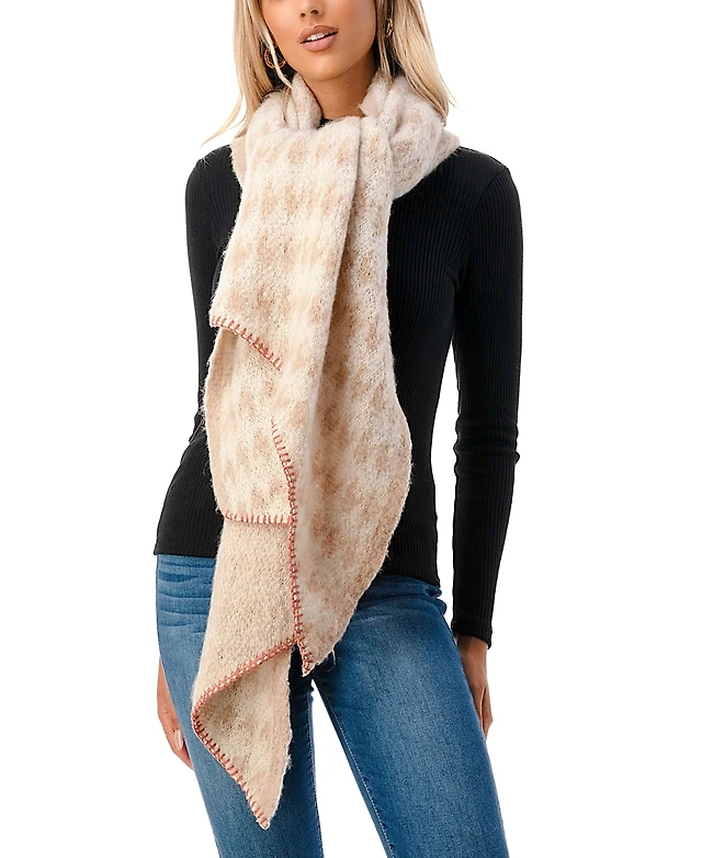 Marcus Adler Women's Plush Houndstooth Bias Cut Scarf