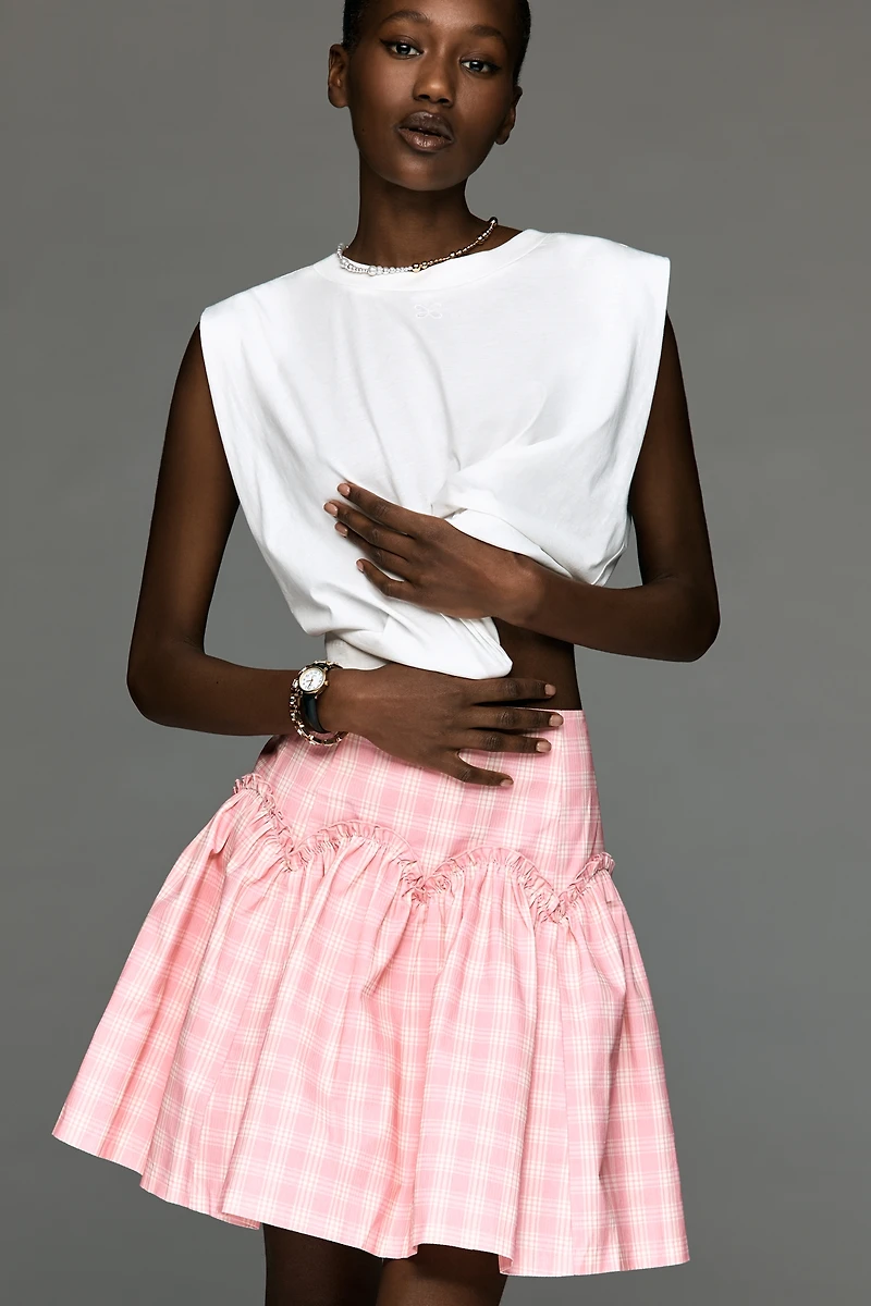 Mare Basque-Waist Plaid Mini Skirt