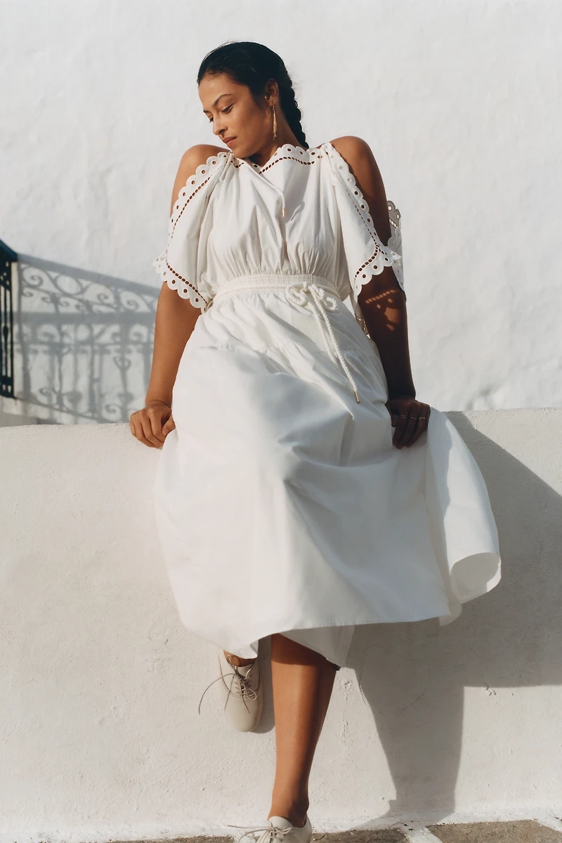 Mare Cold-Shoulder Eyelet Midi Dress