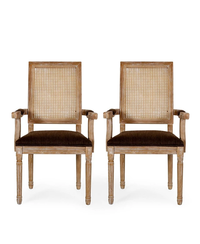 Maria French Country Wood and Cane Upholstered Dining Chair Set, 2 Piece