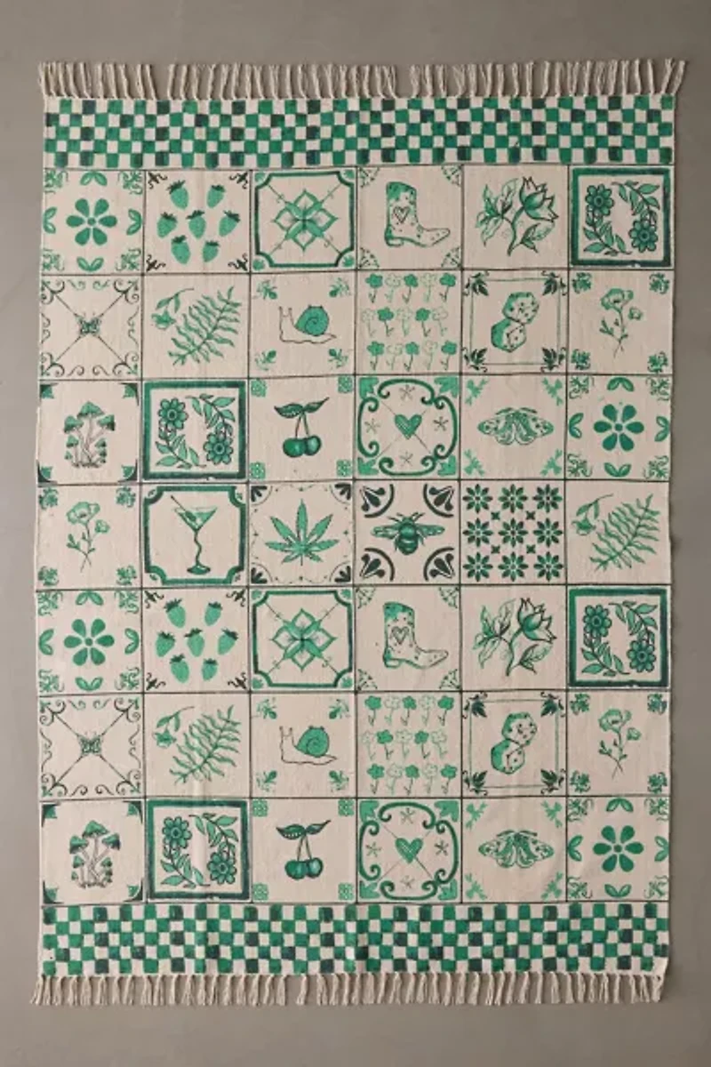 - - Mariana Tile Flatweave Printed Rug from UO Home