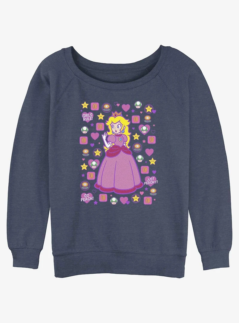 Mario Princess Peach Girls Slouchy Sweatshirt