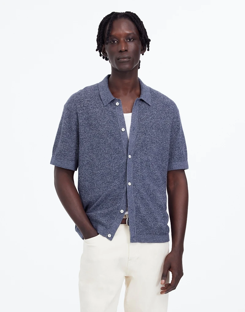 Knit from marled cotton yarn for a speckled look, this sweater polo features a full button front, finished with genuine shell buttons.