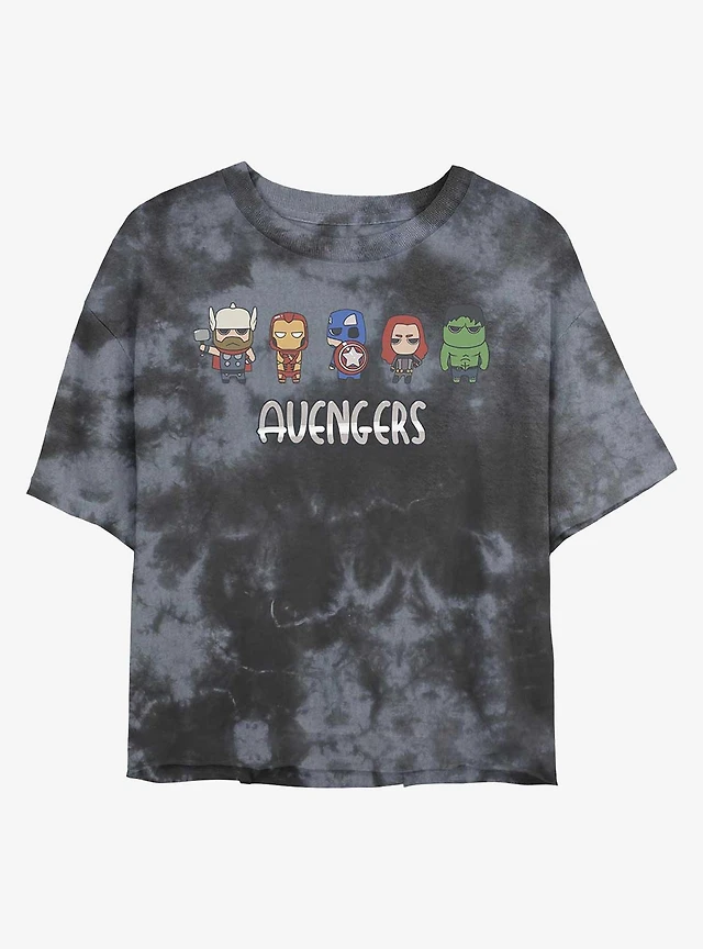 Marvel Avengers Chibi Womens Tie-Dye Crop T-Shirt