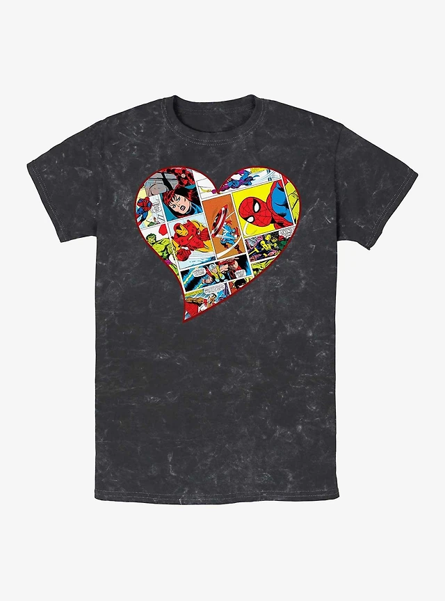 Marvel Avengers Comic Heart Mineral Wash T-Shirt