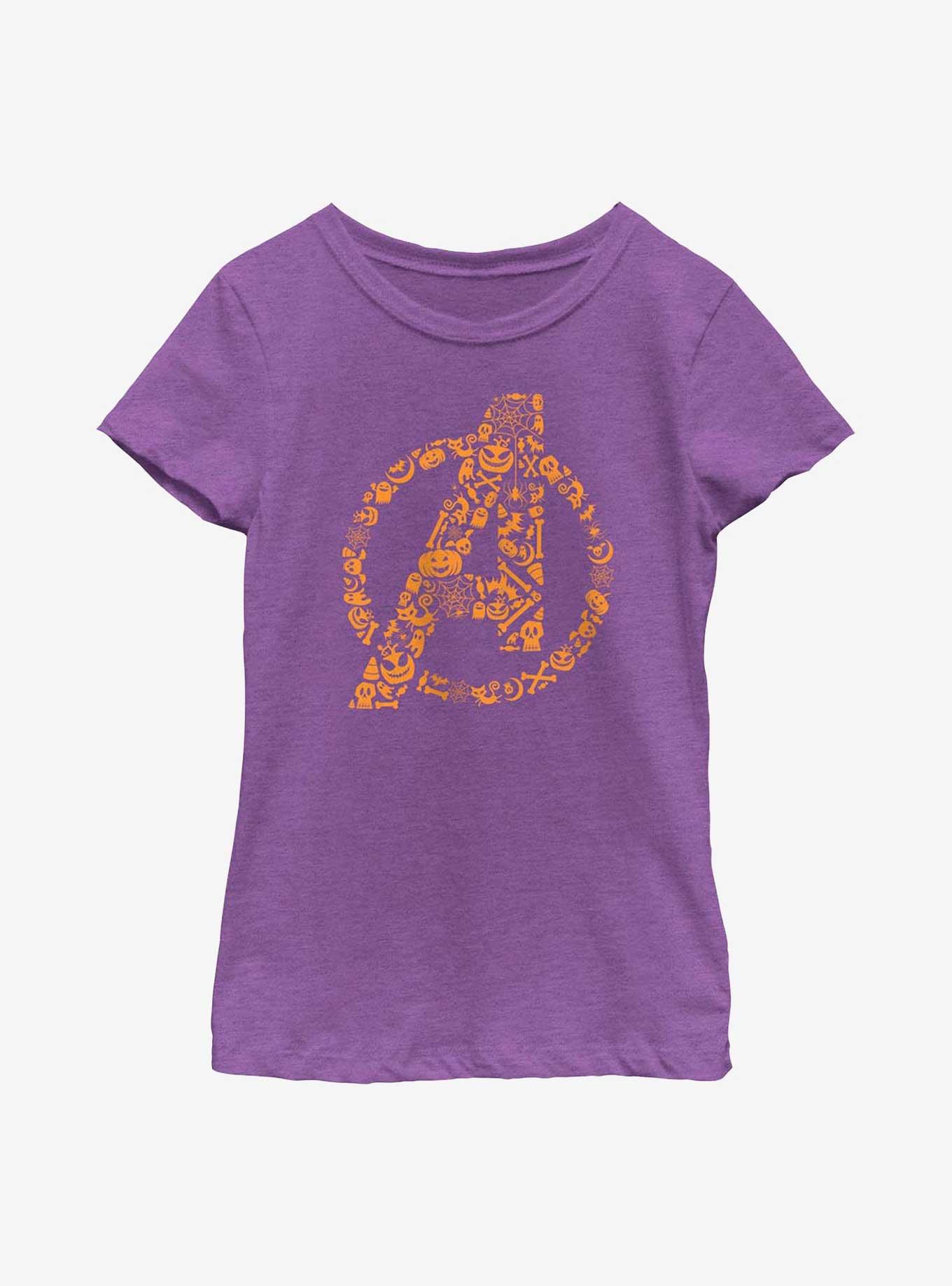 Product ID: 19916565 Marvel Avengers Halloween Logo Fill Youth Girls T-Shirt