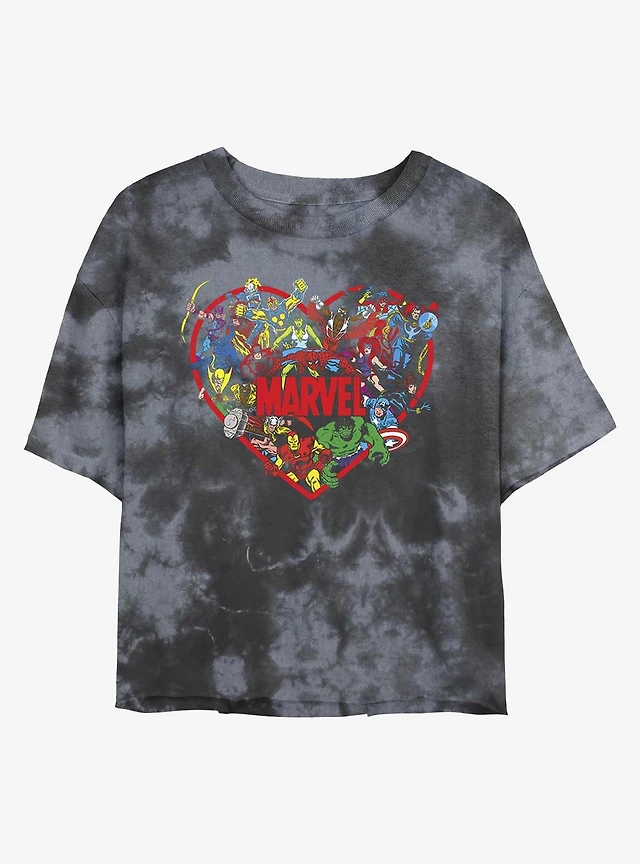 Marvel Avengers Retro Hero Heart Womens Tie-Dye Crop T-Shirt