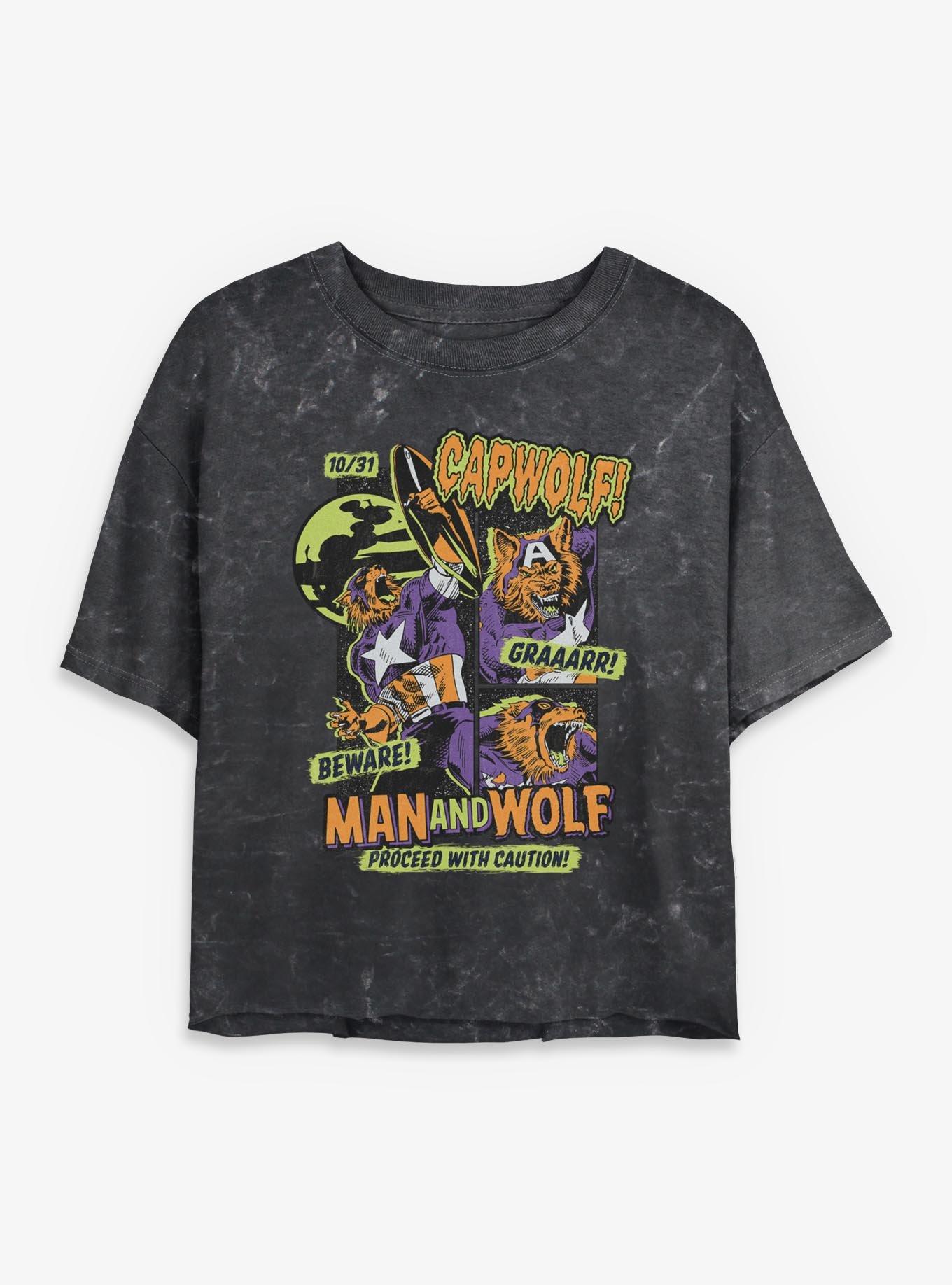 Marvel Captain America Capwolf Comic Style Cover Mineral Wash Womens Crop T-Shirt
