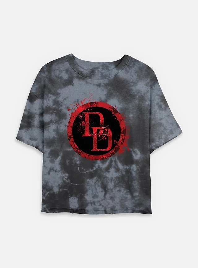 Marvel Daredevil DD Spatter Icon Womens Tie-Dye Crop T-Shirt
