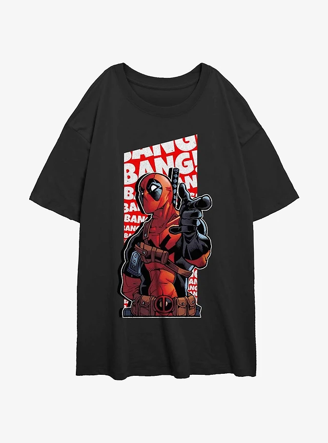 Marvel Deadpool Bang Finger Gun Womens Oversized T-Shirt