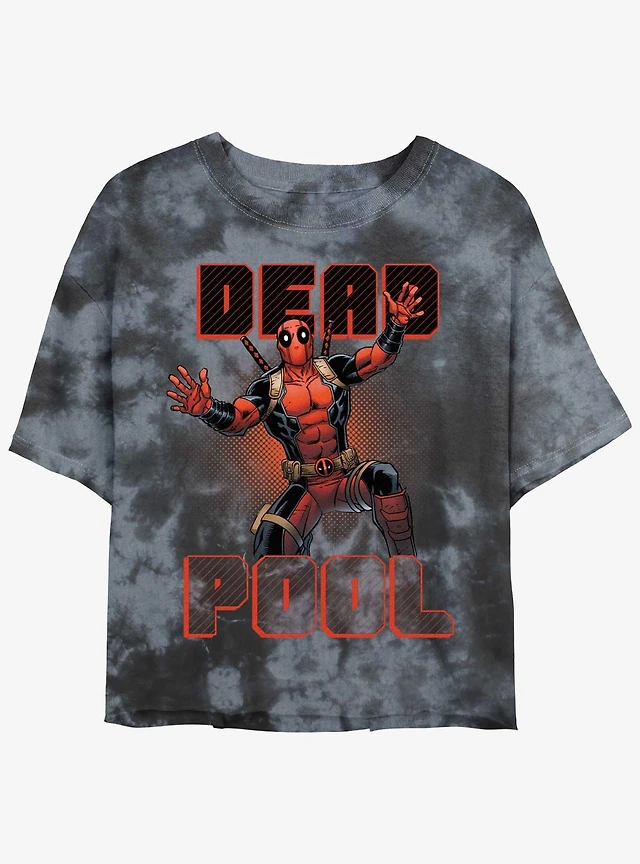Marvel Deadpool Action Panels Womens Tie-Dye Crop T-Shirt