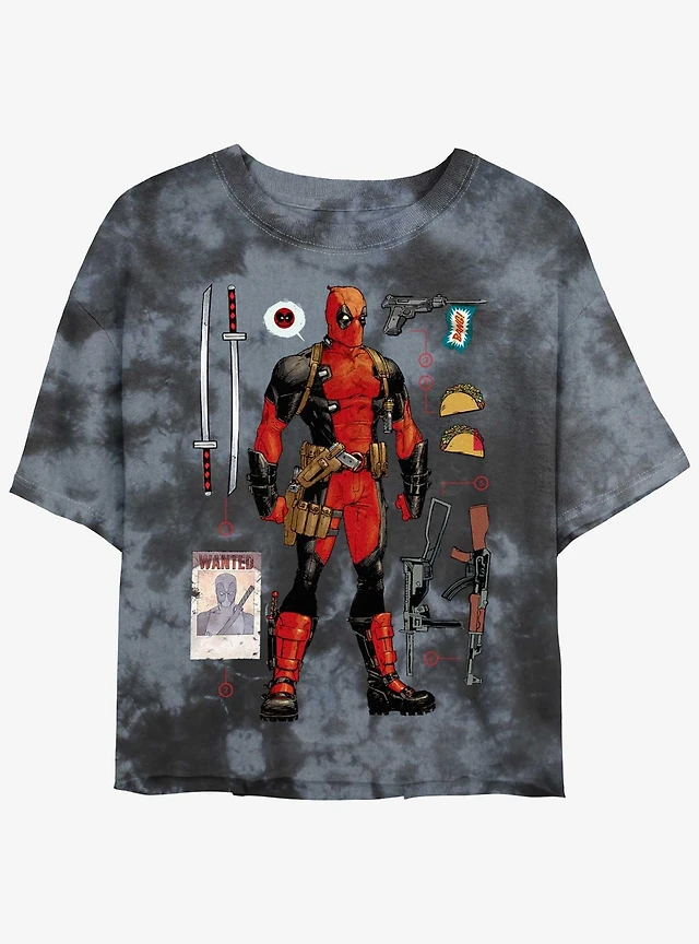 Marvel Deadpool Mercenary Items Womens Tie-Dye Crop T-Shirt
