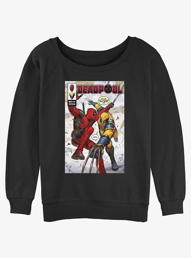 Marvel Deadpool & Wolverine Best Friends Comic Womens Slouchy Sweatshirt