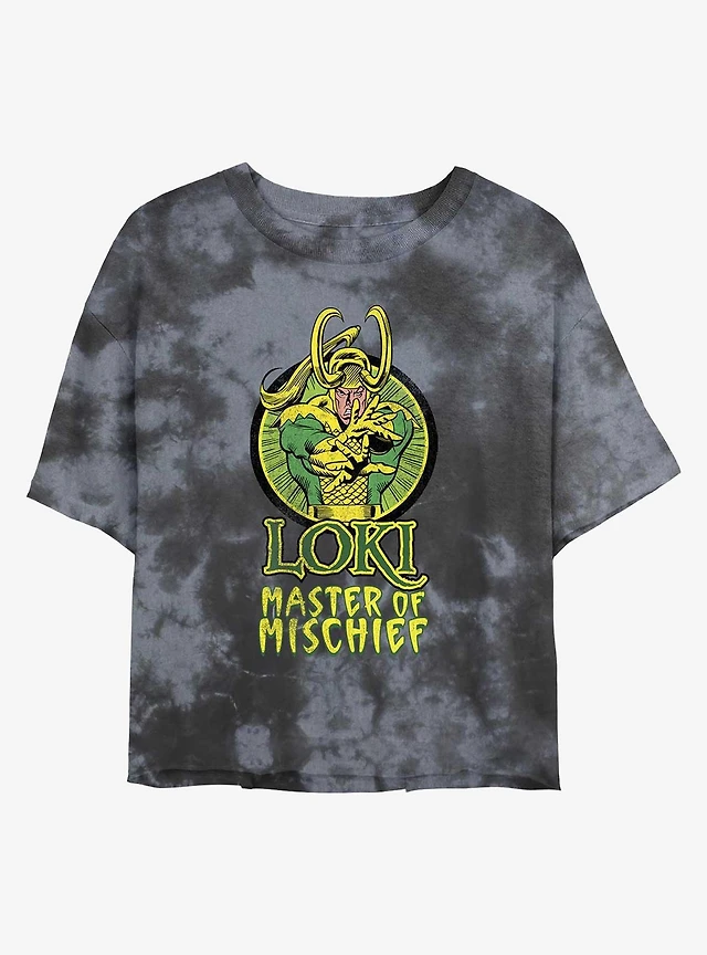 Marvel Loki Master Of Mischief Womens Tie-Dye Crop T-Shirt