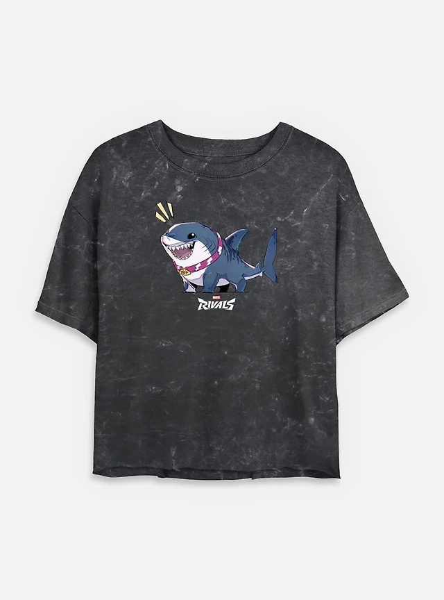 Marvel Rivals Alert Jeff The Landshark Womens Mineral Wash Crop T-Shirt