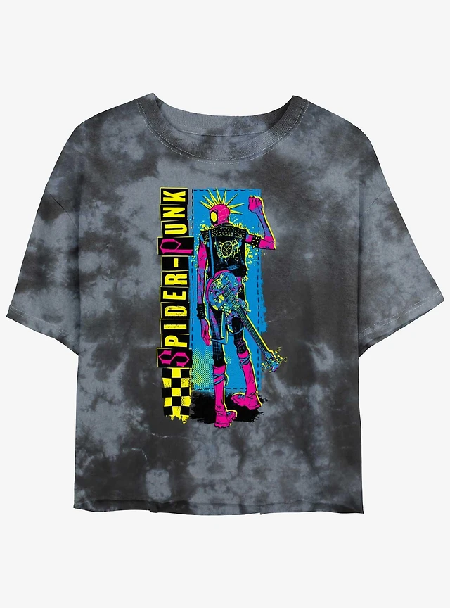 Marvel Spider-Man: Across the Spider-Verse Punk Power Womens Tie-Dye Crop T-Shirt