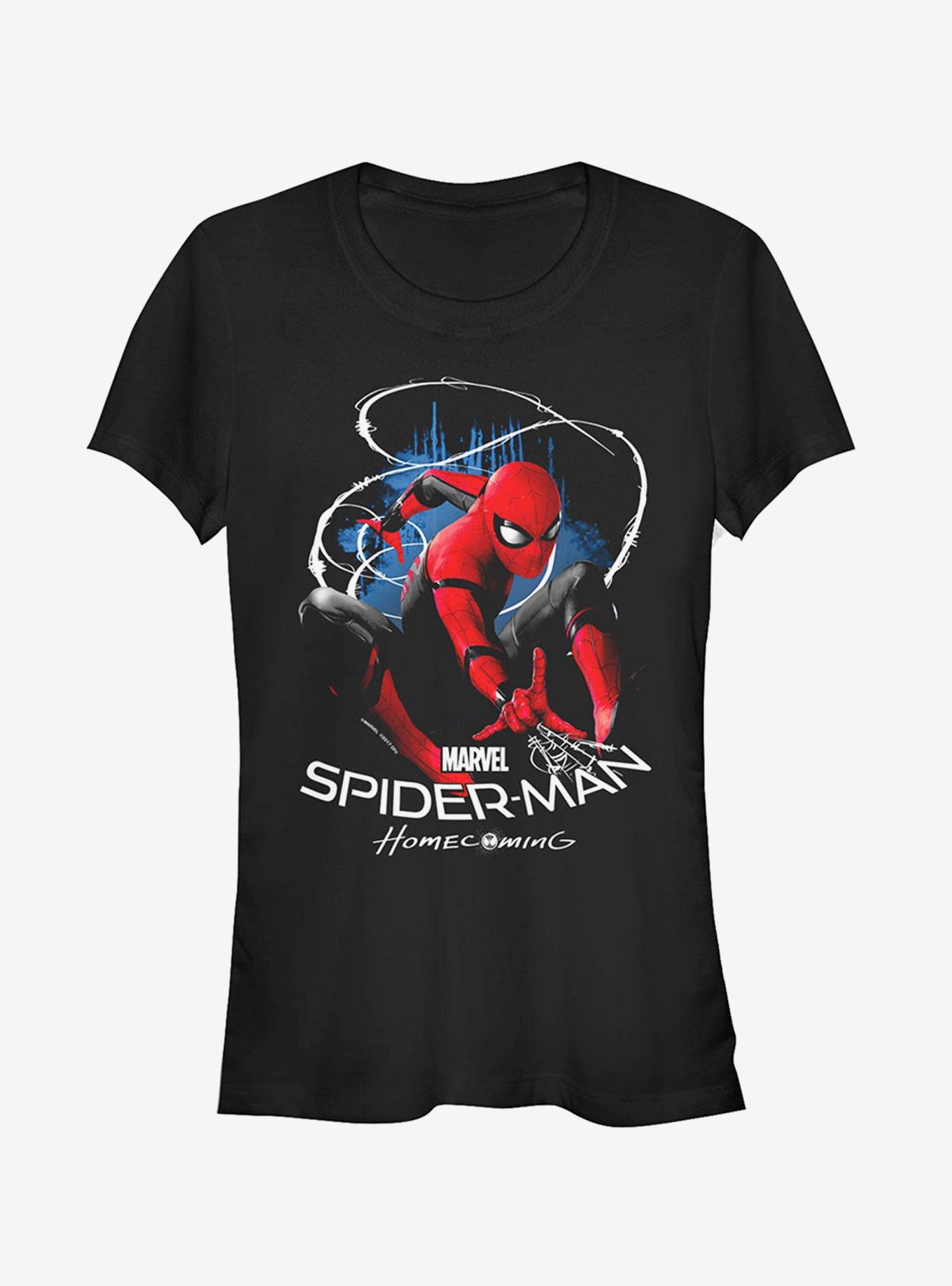 Peter Parker is no ordinary kid and he deserves more than just an ordinary shirt with the Marvel Spider-Man Homecoming Web Lasso Juniors' T-Shirt! This cool Spidey tee shows off your favorite web-slinger and the new Spider-Man Homecoming logo across the front.