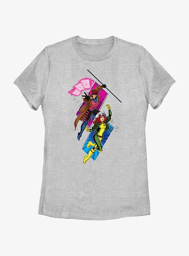Marvel X-Men '97 Gambit And Rogue Attack Womens T-Shirt