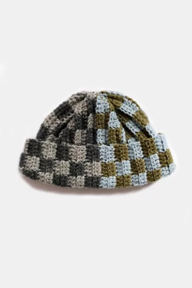 MARVES new york Crochet Checkered Wool Short Roll Beanie