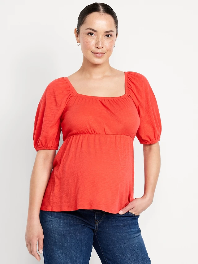 Hello Miz Maternity Ribbed Scoop Neck Floral Puff Sleeve Top