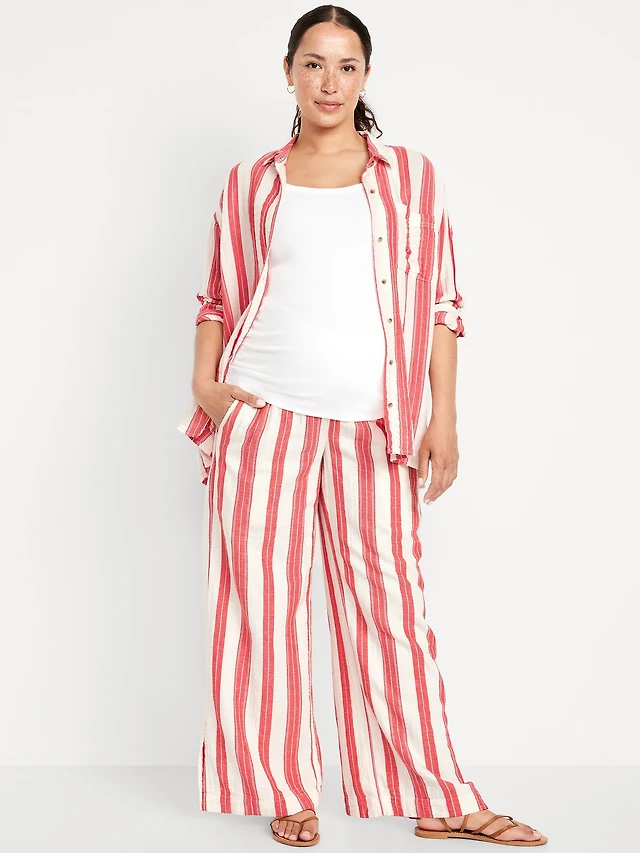 Maternity Rollover Waist Linen-Blend Wide-Leg Pants
