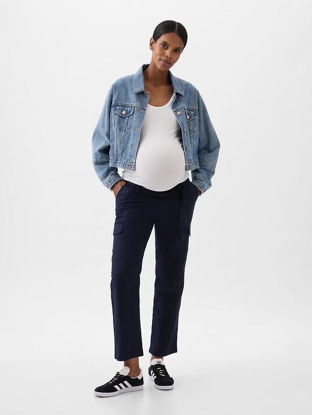 Maternity Under Belly Linen-Cotton Cargo Pants