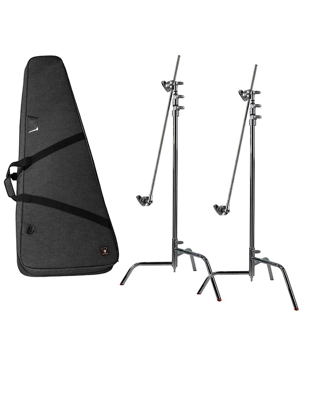 Matthews 40" C+ Stand with Turtle Base, Grip Head and Arm, Chrome, 2-Pack, Bundle with Slinger L7 BigBag 2 Durable Case