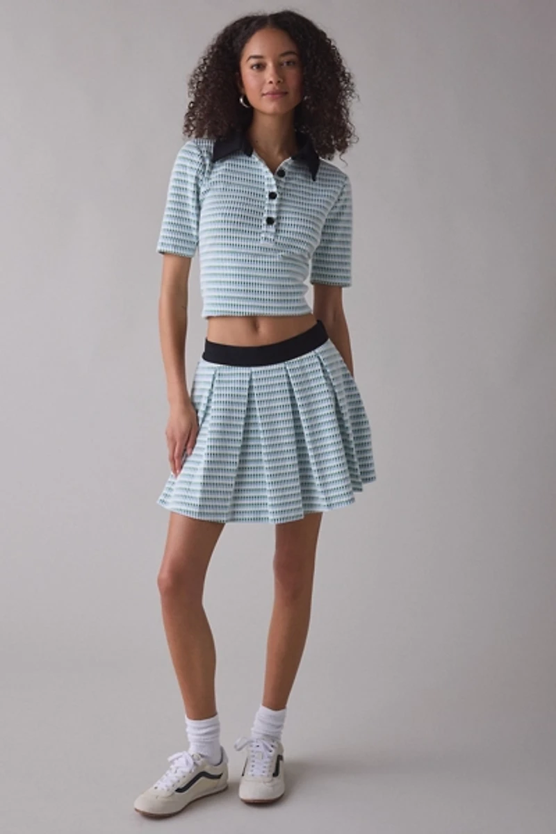 Maude Club Hyatt Micro-Check Pleated Mini Skirt