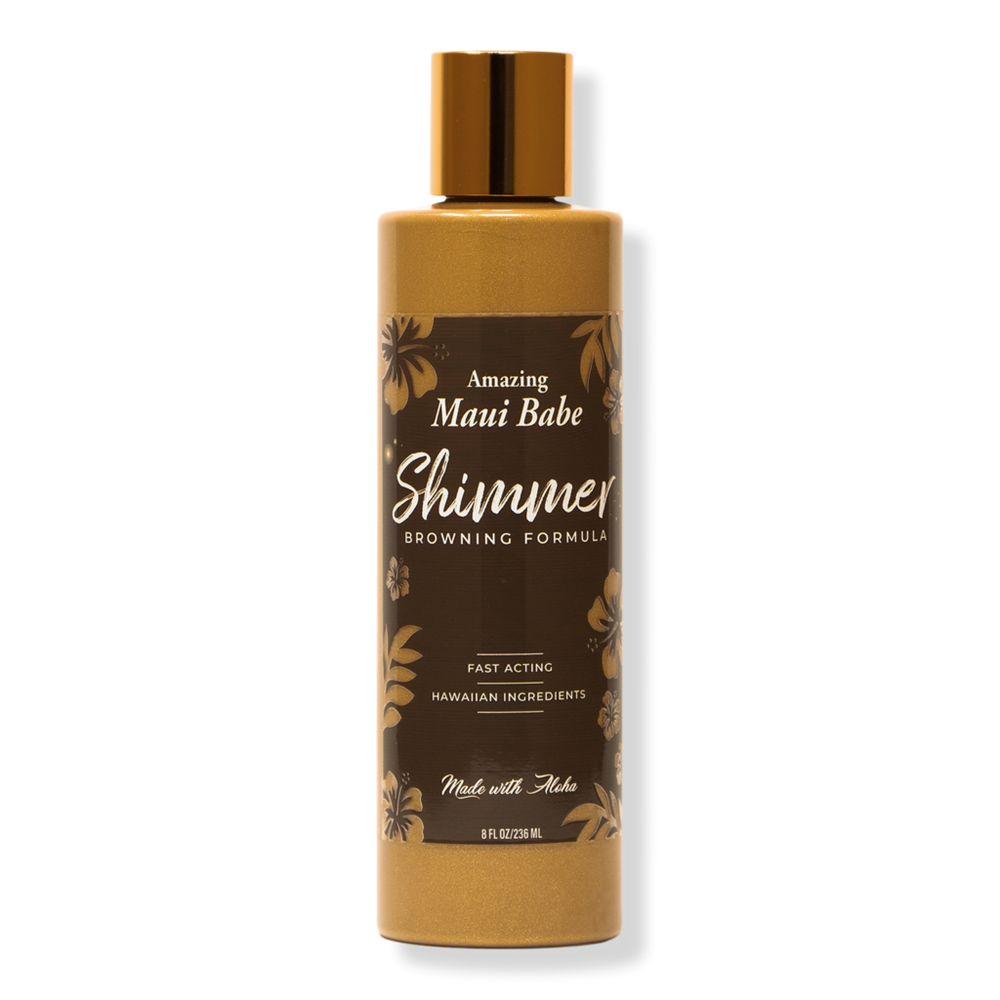 MAUI BABE SHIMMER 8.0OZ. Benefits: Fast tan with a shimmer glow. Features: Natural Hawaiian Ingredients. Gold light-diffusing micro-flecks for eye catching glow. :
