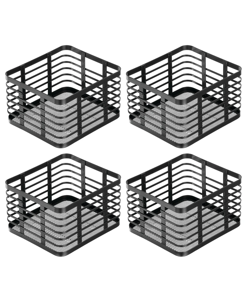 mDesign Metal Pantry Basket with Handles - Set of 4 - Matte Black