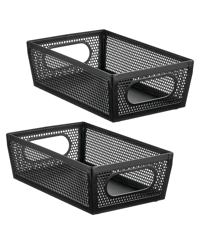 mDesign Perforated Metal Storage Bin with Handles - Set of