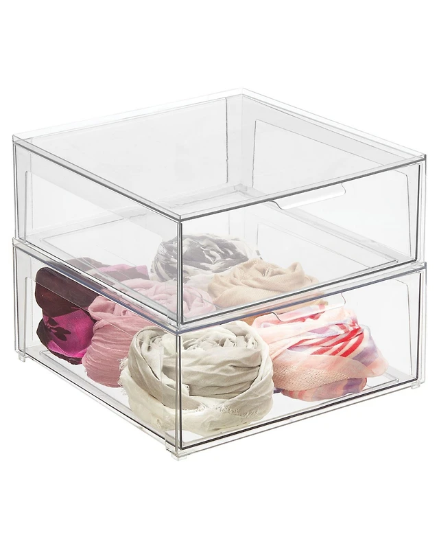 mDesign Plastic Stackable Bedroom Closet Storage Organizer with Drawer, Small - 2 Pack