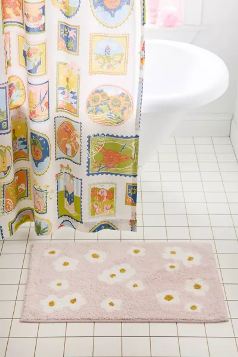 Make your space bloom with this tufted bath mat featuring daisy florals allover the plush cotton fabrication. Available exclusively at Urban Outfitters.