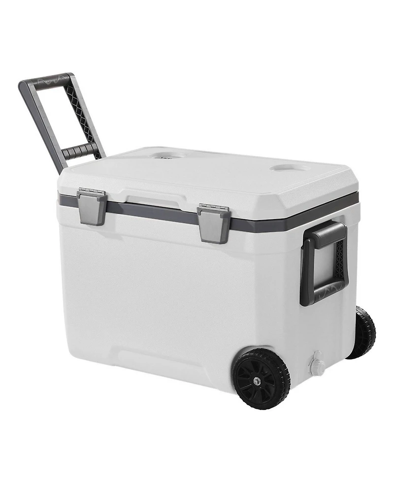 Keep food and drinks cold and ready to enjoy wherever you go with this 45 Qt Portable Wheeled Cooler. Designed for family picnics, camping, road trips, and fishing, it combines generous capacity with lightweight, rigid construction for easy portability. The thick 1.77"" insulation layer delivers long-lasting cooling performance, keeping ice up to 60 hours at 32°F and maintaining chilled temperatures for hours even in warmer conditions. Quiet and efficient, this cooler is built with heavy-duty handles, durable wheels, and a long side handle so you can move it effortlessly over grass, gravel, or pavement. Its compact design fits easily in car trunks or Rv storage while still holding up to 64 cans. With integrated cup holders and rugged Pe + Pp materials, this cooler is a reliable companion for all your outdoor adventures.