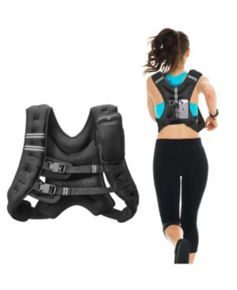 Maximize your workout potential with this premium 12 lb weighted vest. Constructed from soft, durable neoprene and filled with odorless iron pellets, it provides evenly distributed resistance to enhance strength training, running, and cardio routines. The vest features cushioned shoulder straps to prevent digging, dual adjustable buckles for a secure no-bounce fit, and reflective strips for safety during night runs. With convenient front and rear pockets for your phone and keys, it combines utility with performance. Suitable for adults and teens ages 14 years and up, and backed by a manufacturer warranty.